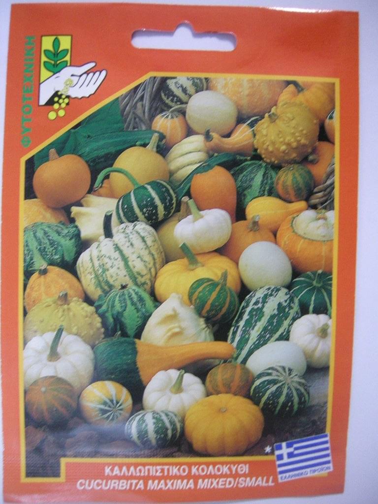 ΚΟΛΟΚΥΘΑΚΙ ΚΑΛΛΩΠΙΣΤΙΚΟ. Μίγμα σπόρων από διάφορα είδη κολοκυθιών. Σπέρνεται την άνοιξη έως και τον Ιούνιο και συγκομίζεται τέλος καλοκαιριού και φθινόπωρο. Φάκελος που περιέχει περίπου 10 σπόρους.