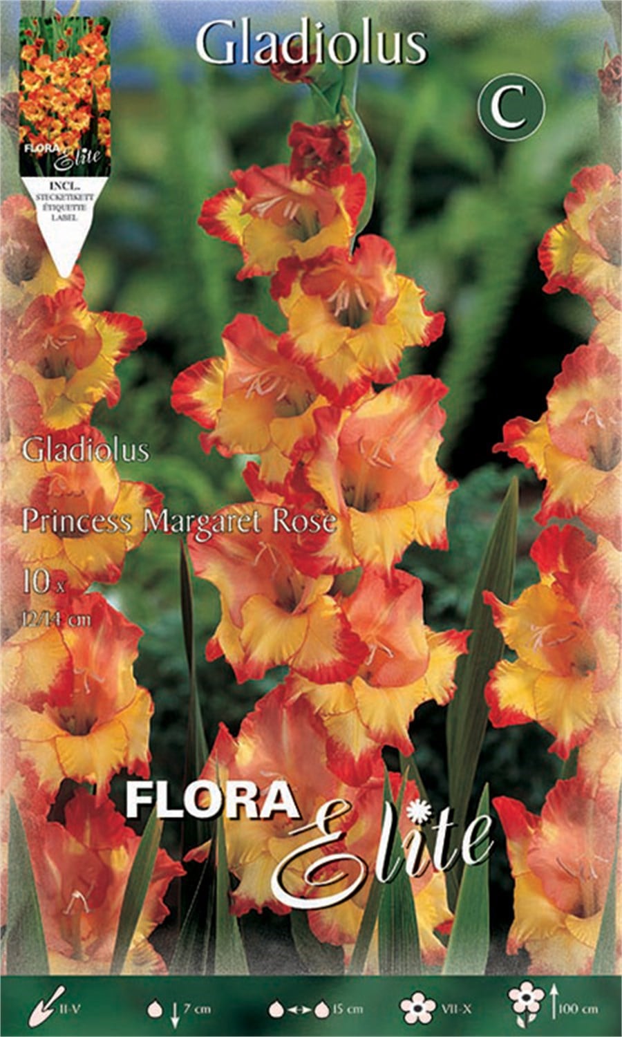 ΓΛΑΔΙΟΛΑ PRINCESS MARGARET ROSE. Οι βολβοί φυτεύονται από Μάρτιο εως Μάϊο σε φωτεινές ή ημισκιερές θέσεις σε βάθος 10 cm και σε απόσταση μεταξύ τους 15 cm. Το φυτό αποκτά ύψος 100 – 120 cm και ανθίζει συνήθως Ιούλιο – Αύγουστο. Ένας βολβός.