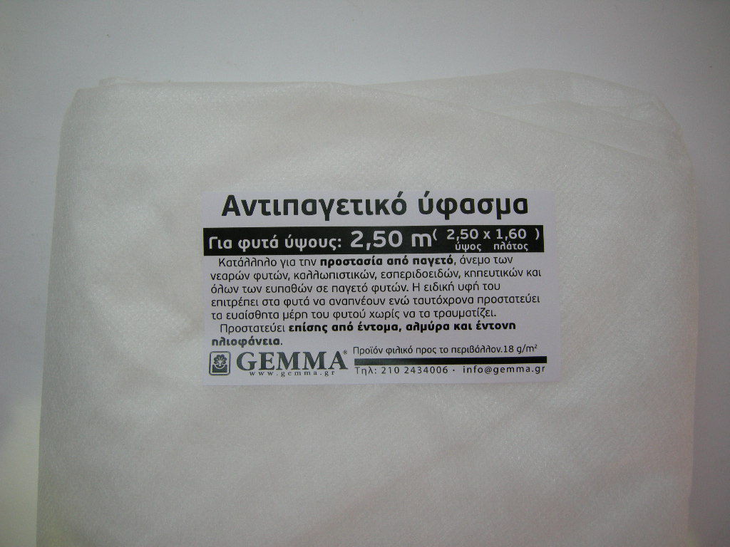 Αντιπαγετικό ύφασμα ραμένο σε μορφή μεγάλης κουκούλας διαστάσεων 2,50 μέτρων ύψος Χ 1,60 μέτρα πλάτος ( περίμετρος 3,20 μέτρα ). Για μεγάλα φυτά δένδρων και θάμνων. Non woven ύφασμα, ειδικά σχεδιασμένο για την προστασία καλλιεργειών.